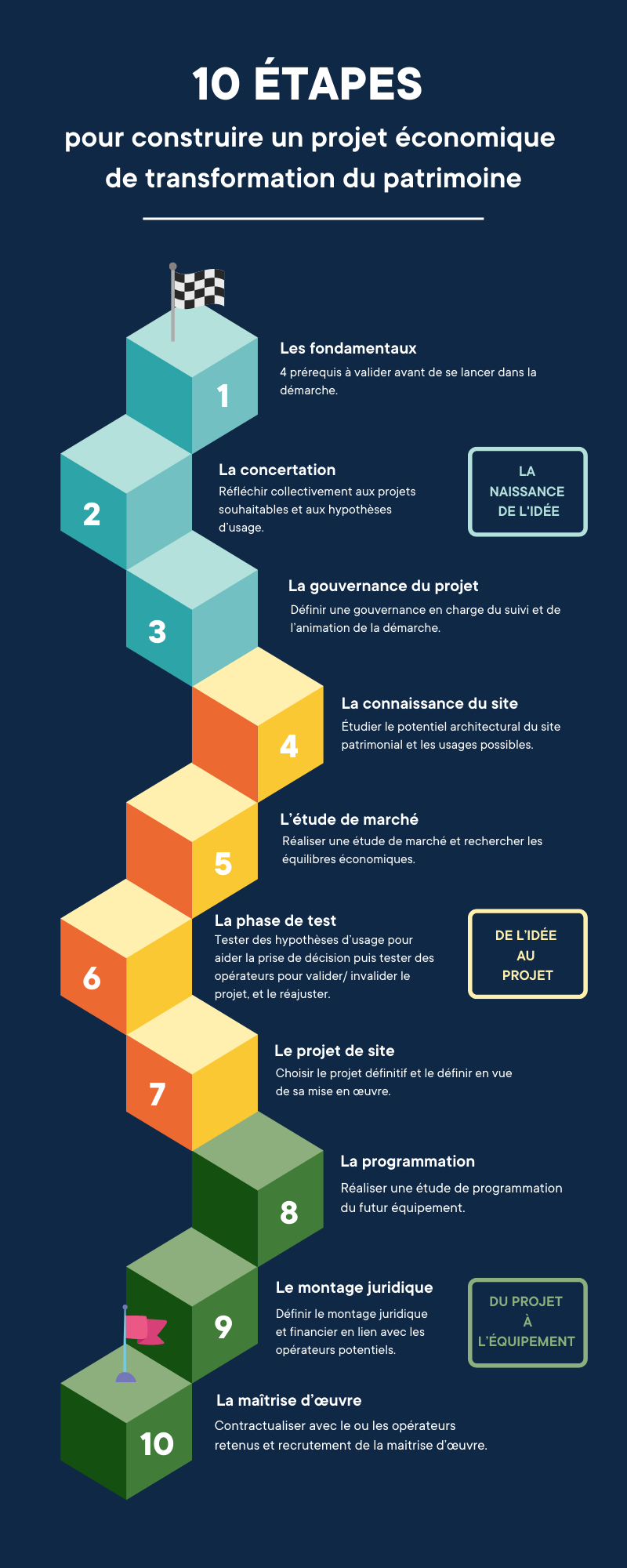 Le guide méthodologique en 10 étapes pour favoriser la mise en œuvre d’un projet durable et économiquement viable.