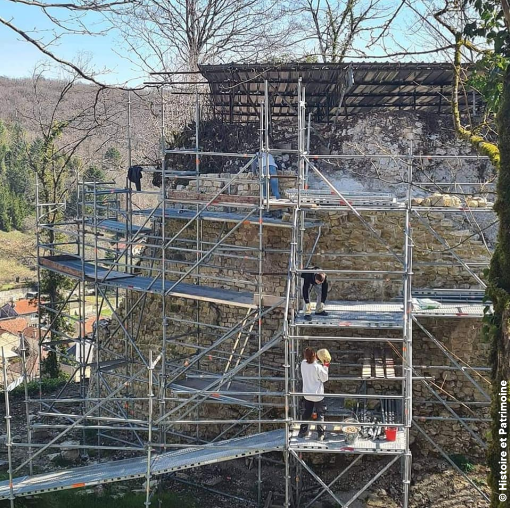 Oui, en 2022, nous avons fêté le 20e chantier de bénévoles. Il y a eu en tout 5 chantiers consacrés à la tour canonnière et 15 aux autres parties du château, tous encadrés par l’association Histoire et Patrimoine. Les bénévoles ont également participé à des petits chantiers annexes, notamment pour créer du lien avec les habitants. En 2014, les bénévoles ont travaillé à la remise en peinture à l’ocre des menuiseries anciennes du village. Avec des peintures à base d'huile de lin qu’ils ont réalisées, ils ont repeint la porte de l’église, mais également des portes d’anciennes granges ou des volets de particuliers. Cette activité était très sympa et facile à mettre en œuvre. Elle a permis à la population de s’approprier cette jeunesse et d’ajouter une touche de couleur à la commune.
